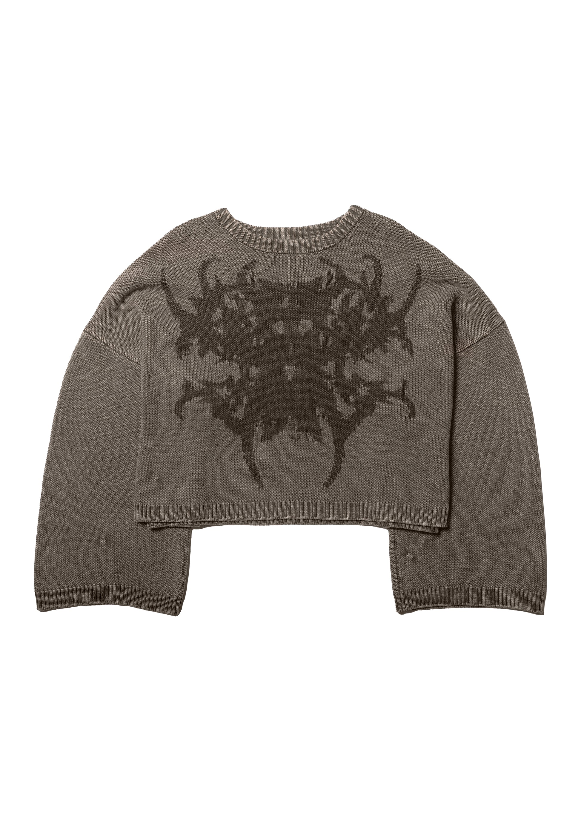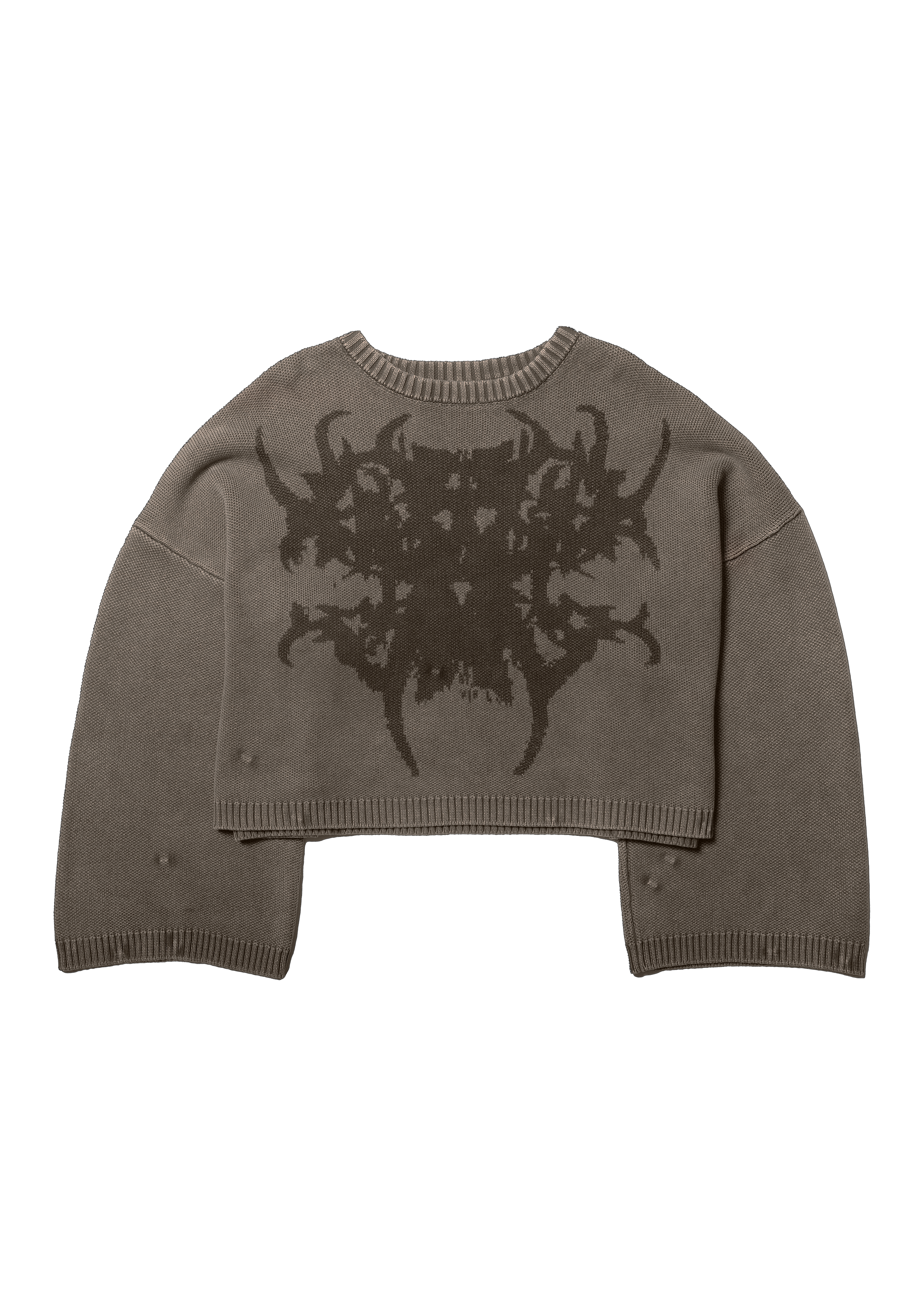 The Stardust knit sweatshirt is made of 100% cotton and features a boxy, oversized shape with wide arms and a cropped body length. It also has rib-knit cuffs and features the "STARDUST" jacquard artwork at the front.