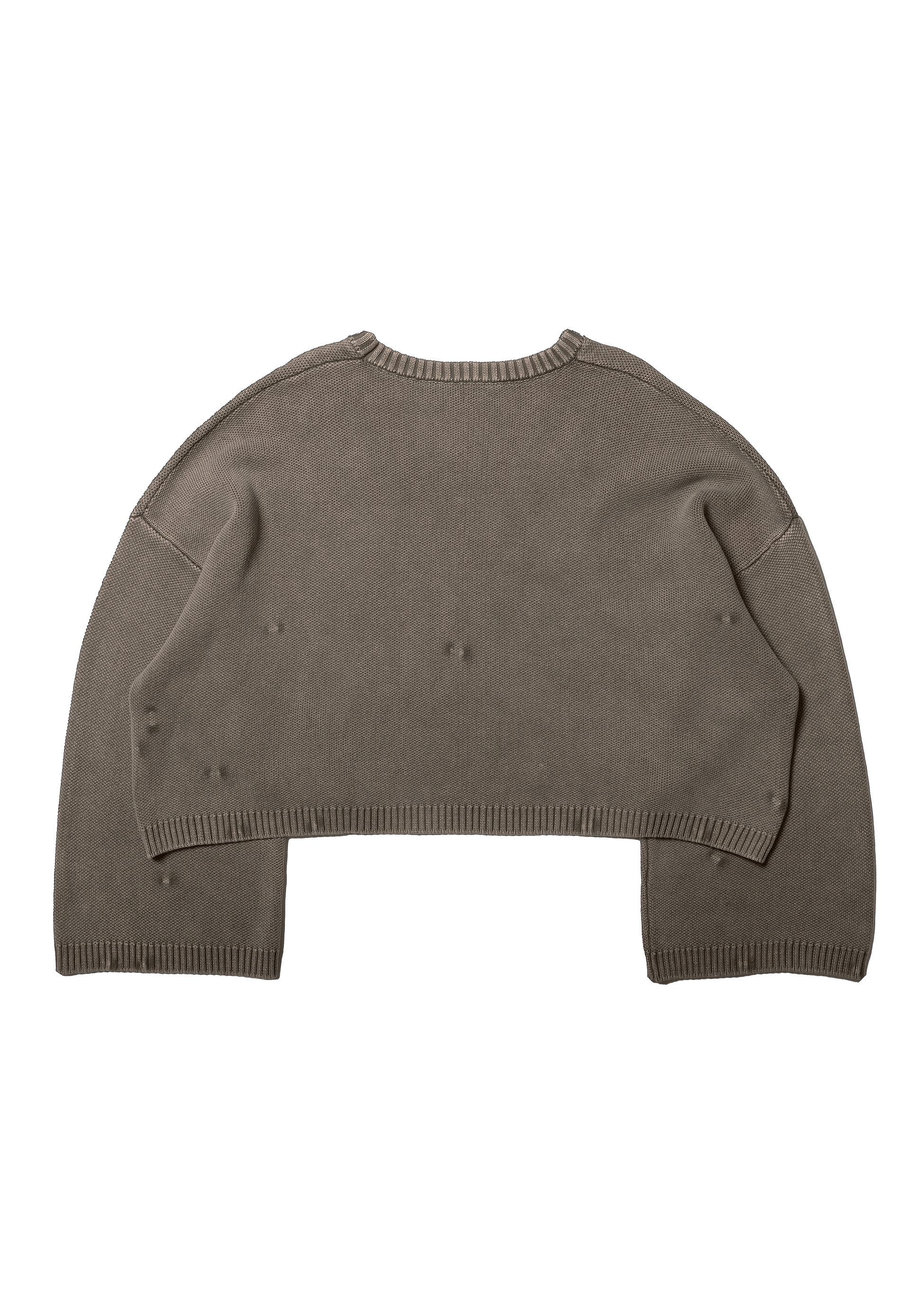 Each knit undergoes a special washing treatment, making every piece truly unique. No knit will look exactly the same, as each one has its own individual wash and finish.